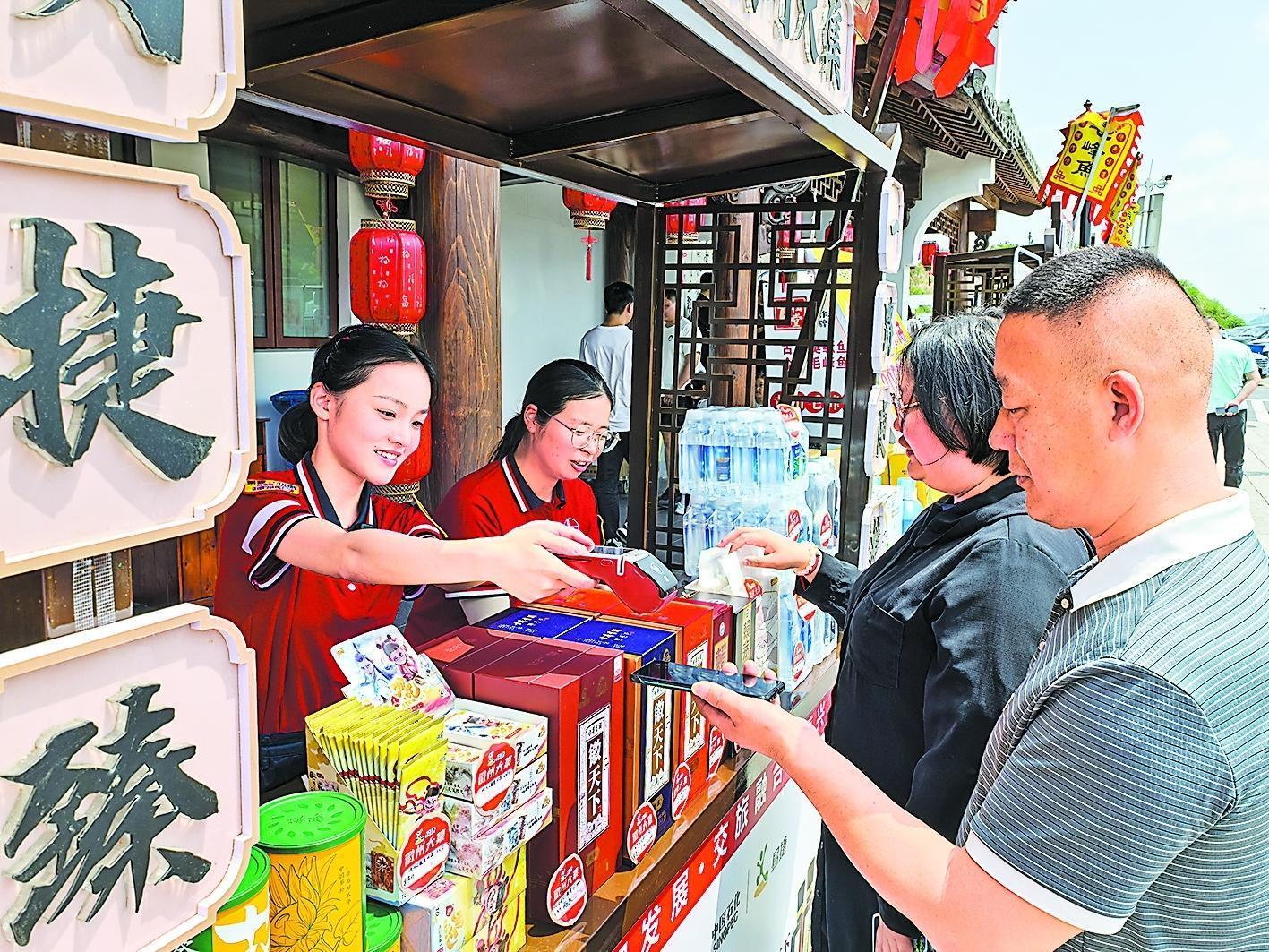 新疆石油深度绑定城区客户消费习惯,培育客户自帮消费习惯,让假日加油更高效。正在安徽黄山石油徽州古城办事区坐易捷“徽州大集”勾当现场奖饰。