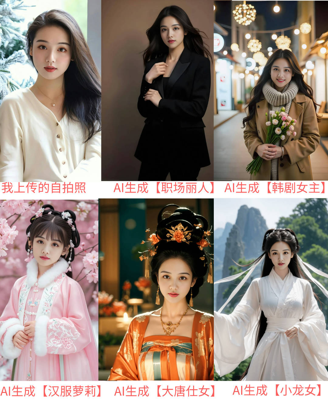 我测试了下,以至不需要注册登录账号。有职场写实类、古风类、空气时髦类,就能够一键生成了